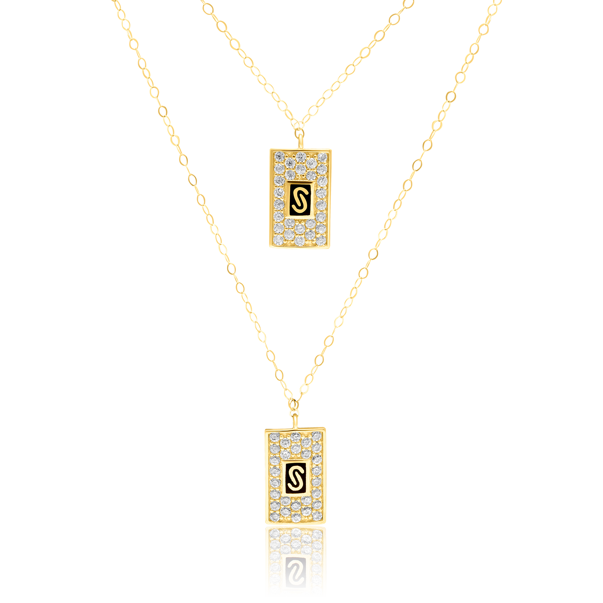 18K Pure Gold 2 Layer Elegant Square Stone Necklace