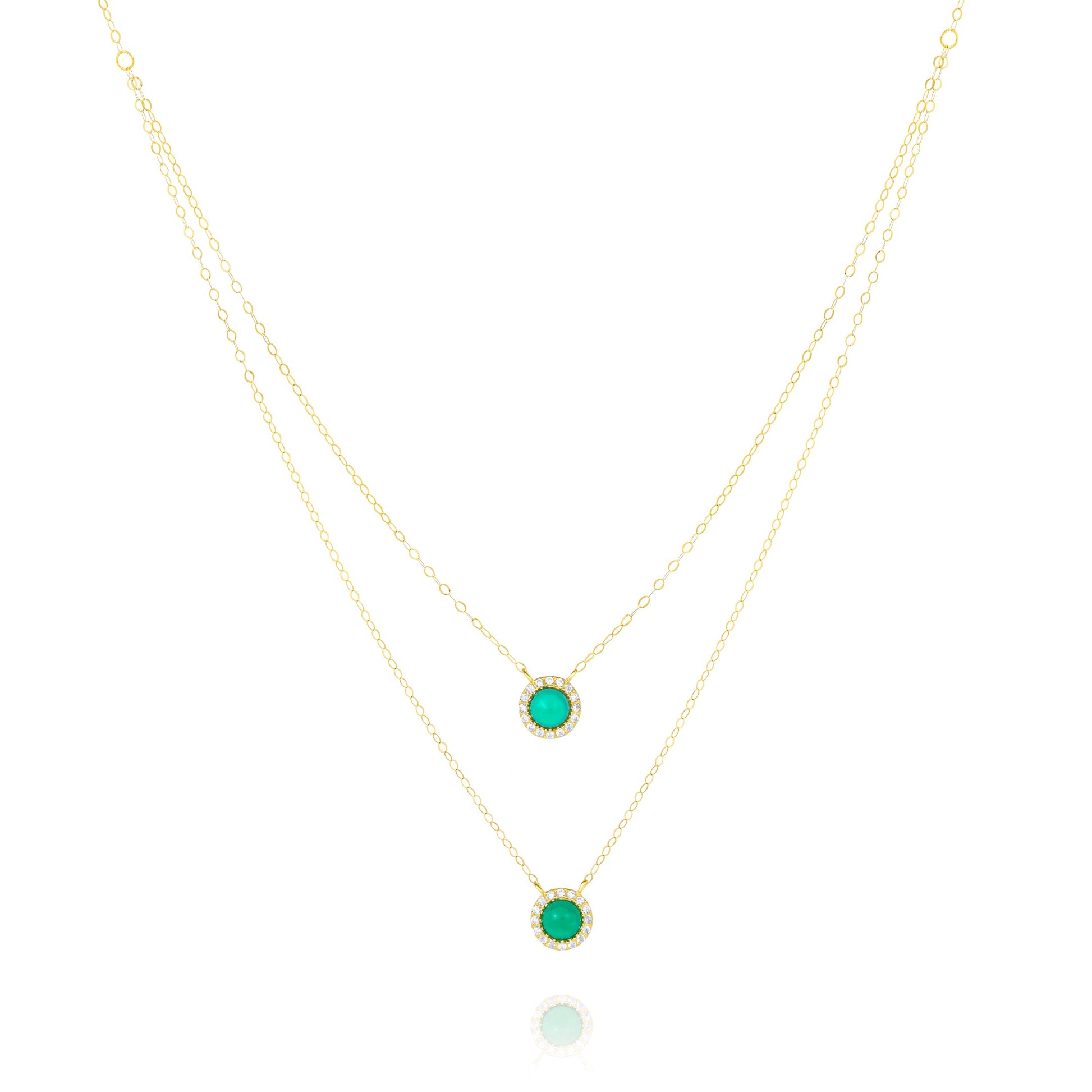 18K Pure Gold 2 Layer Round Green Stone Necklace