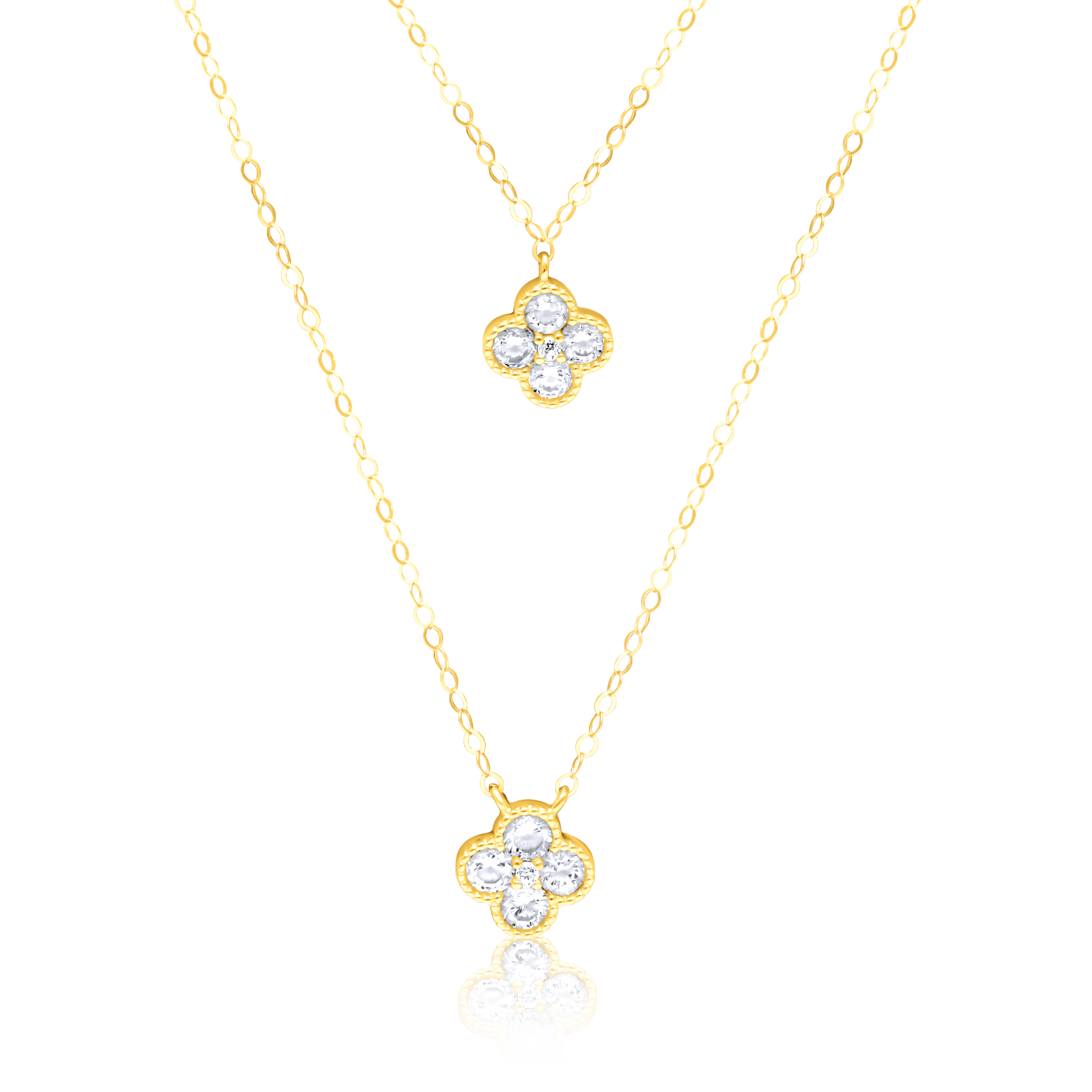 18K Pure Gold 2 Layer Flower Stone Necklace