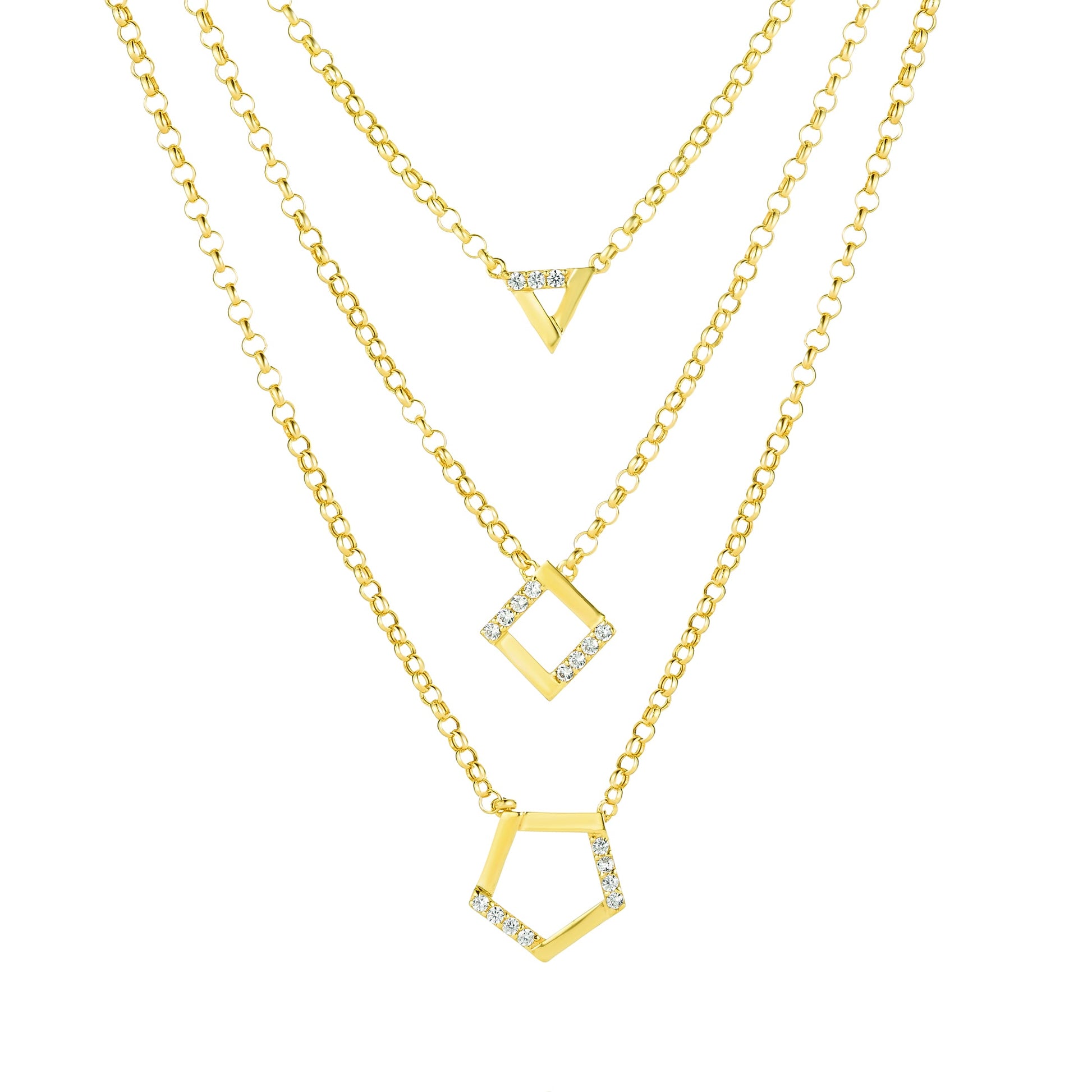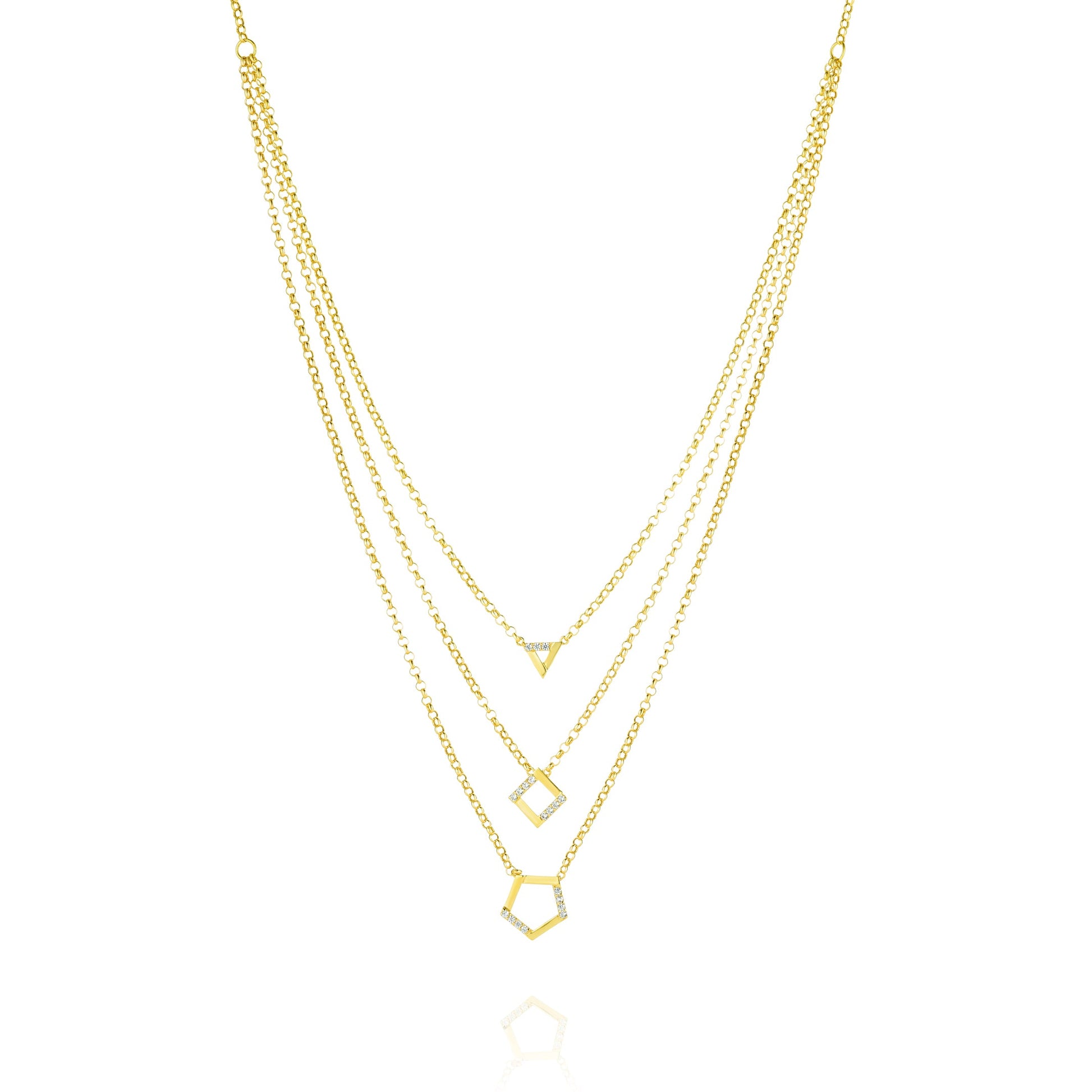 18K Pure Gold 3 Layer Stone Necklace