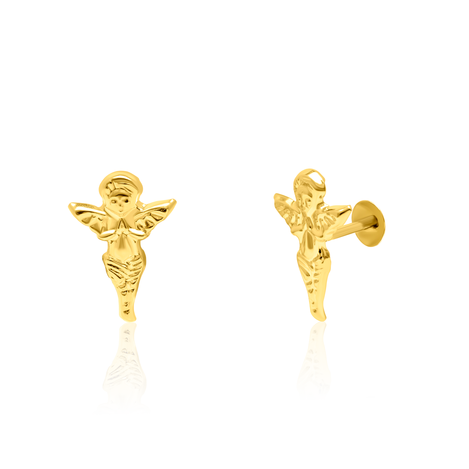 18K Pure Gold Angel Screw Earring Set