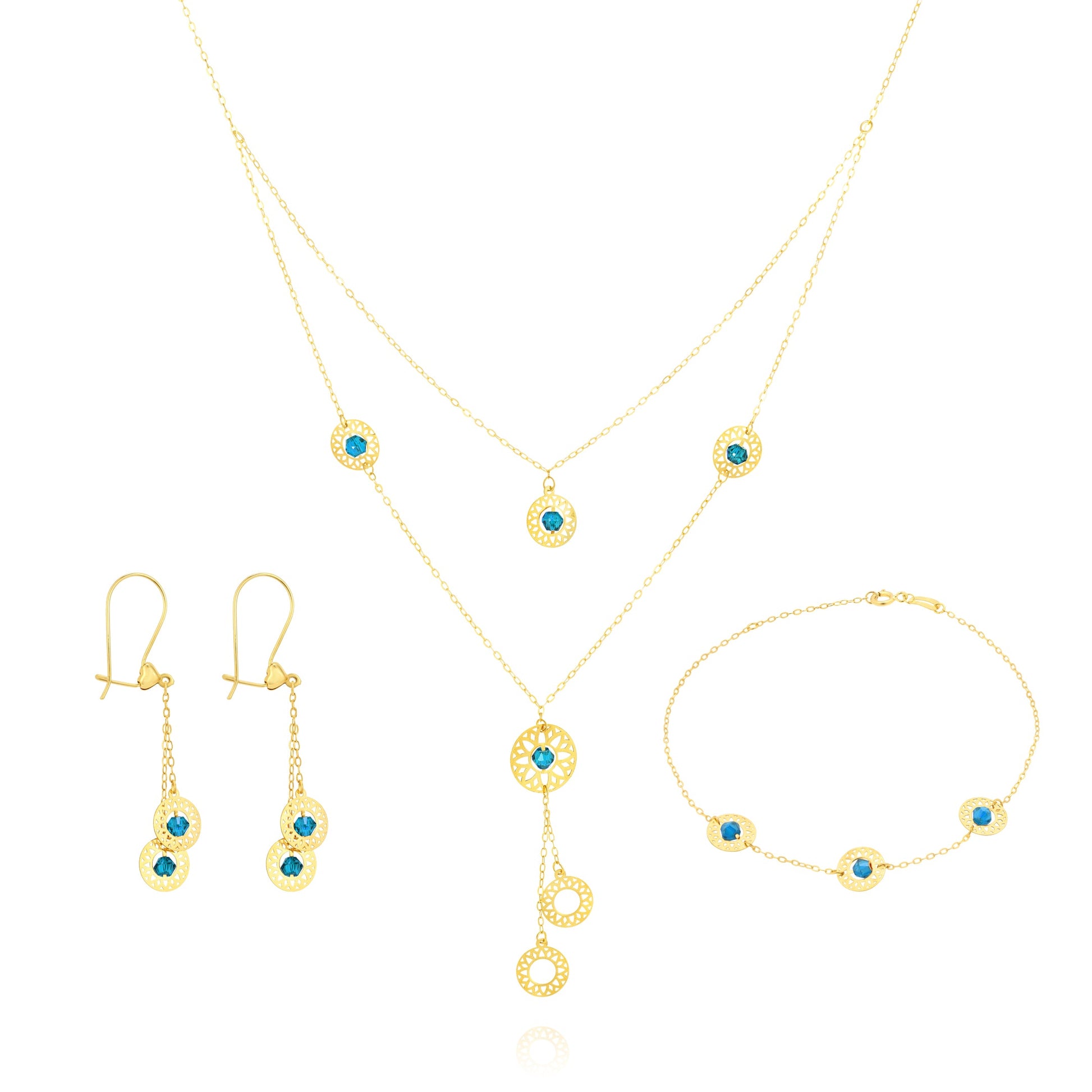 - Blue Stone Round Jewelry Set (Bracelet, Necklace, Earrings)