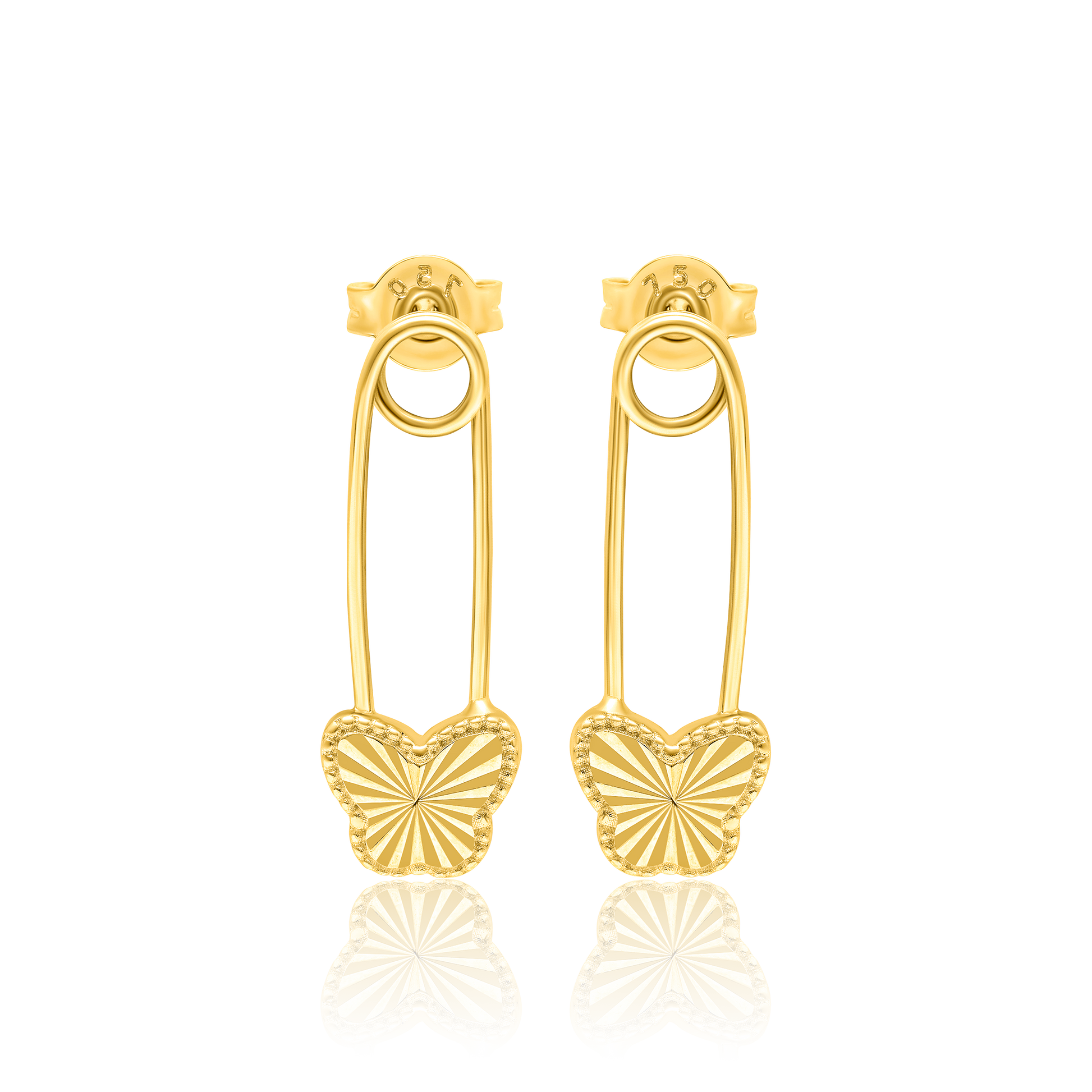 18K Pure Gold Butterfly Pin Earring Set