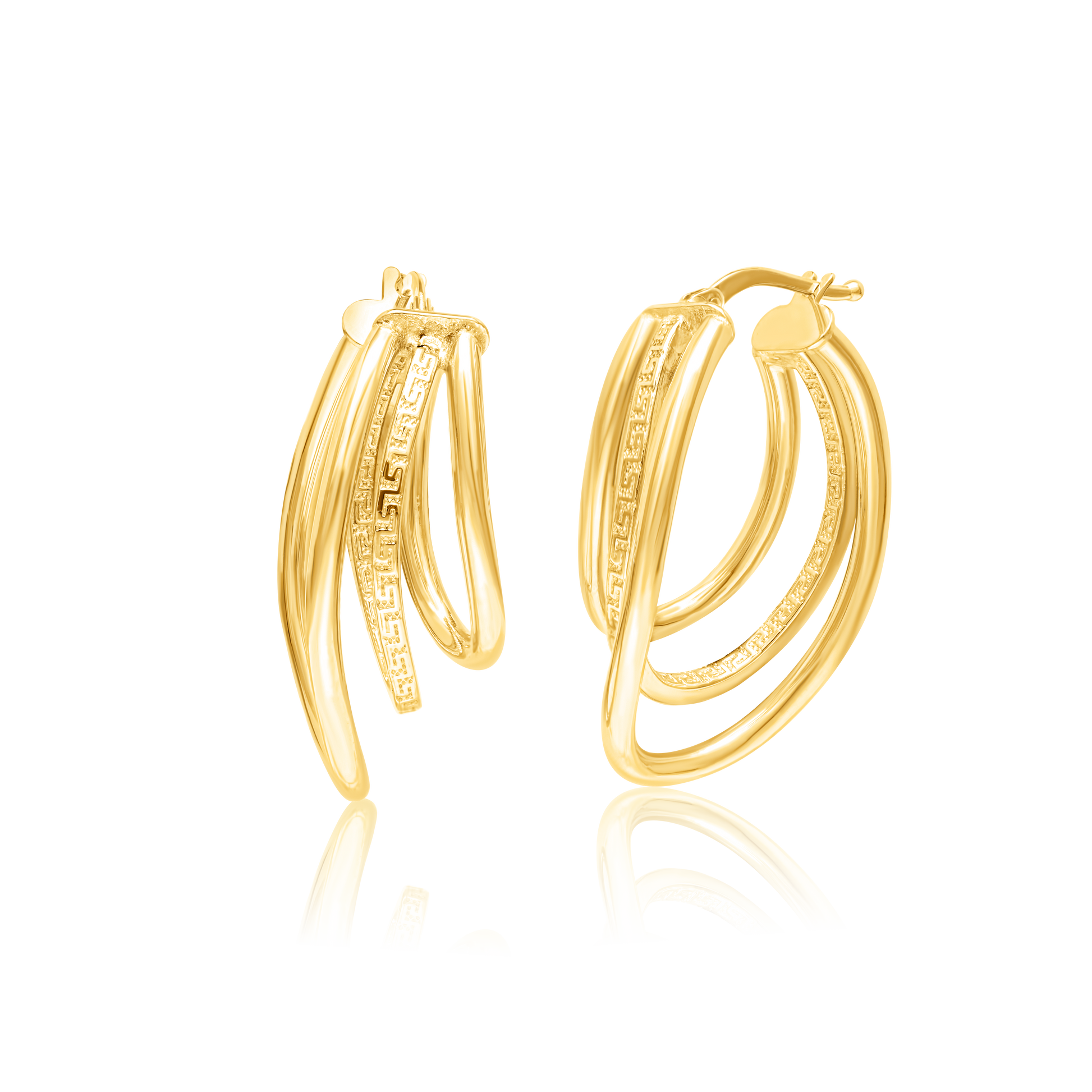 18K Pure Gold Curved 3 Layer Oval Earring Set