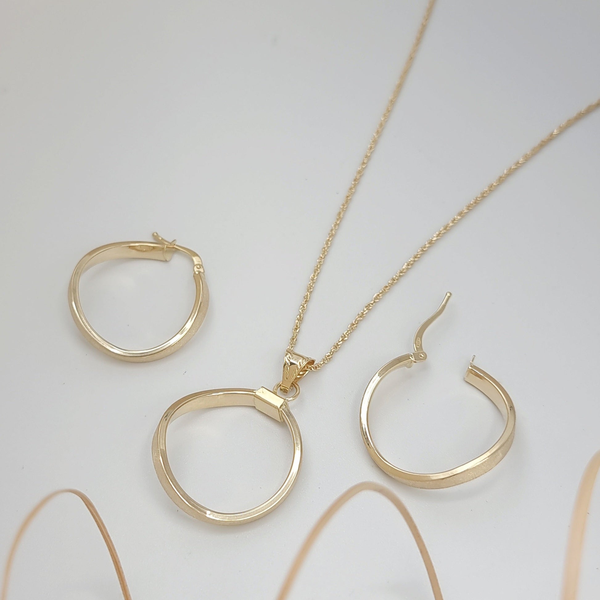 18K Pure Gold Curved Round Jewelry Set