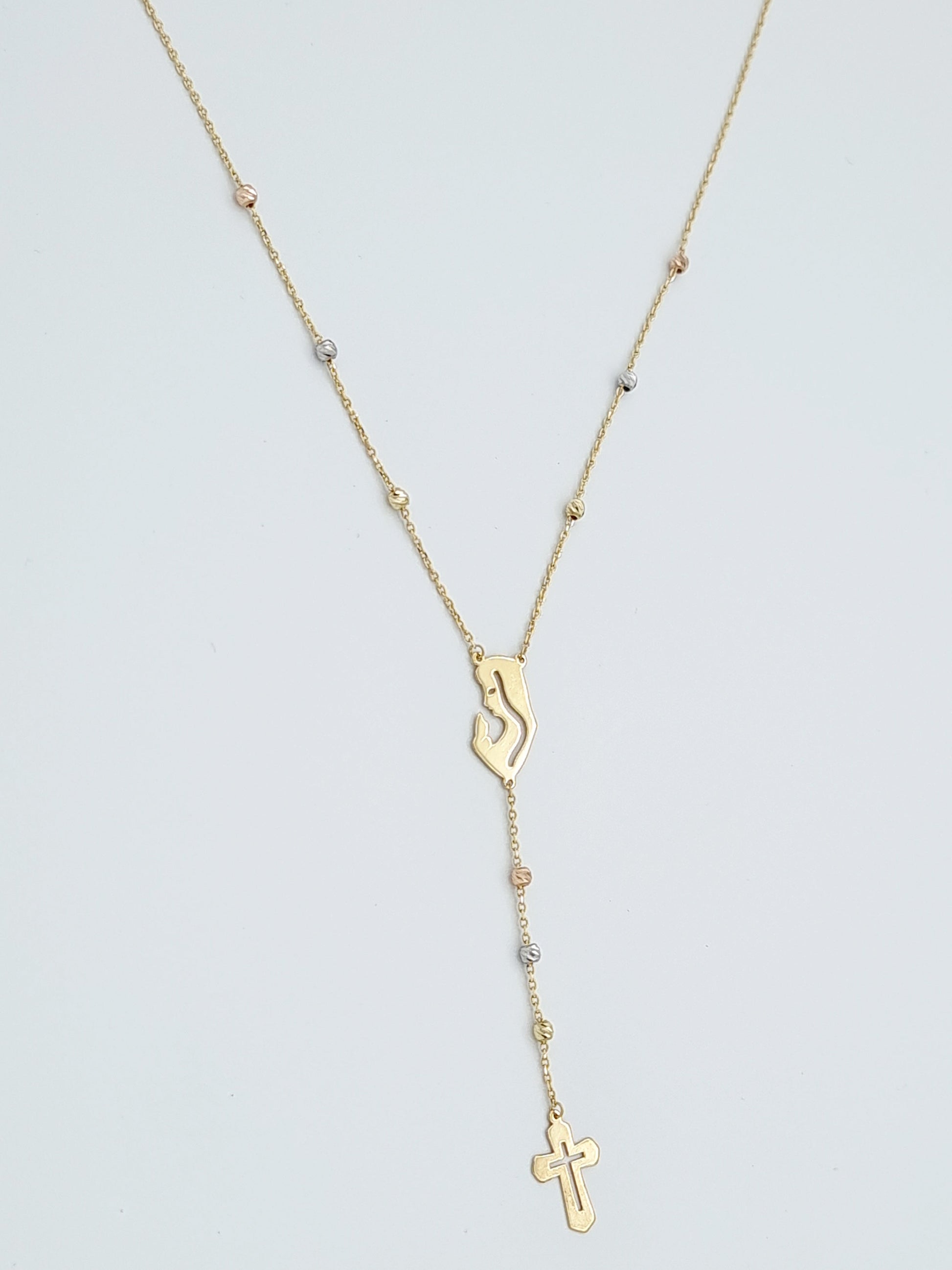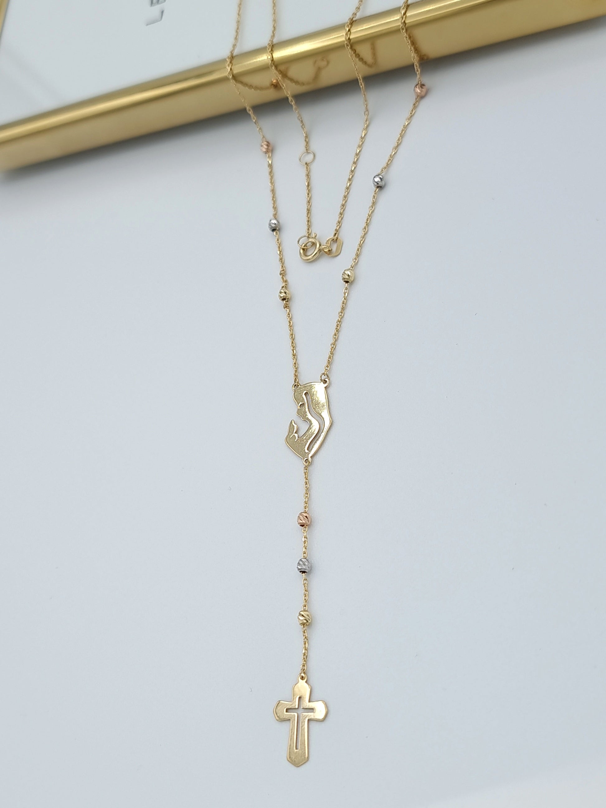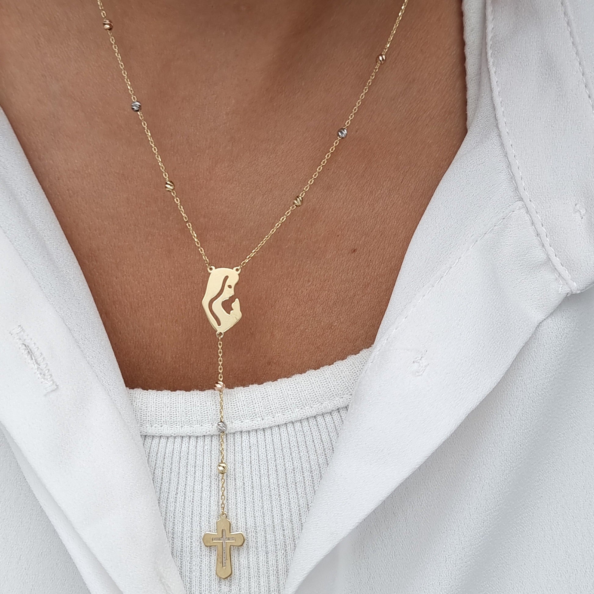 18K Pure Gold Elegant Mama Mary Cross Necklace