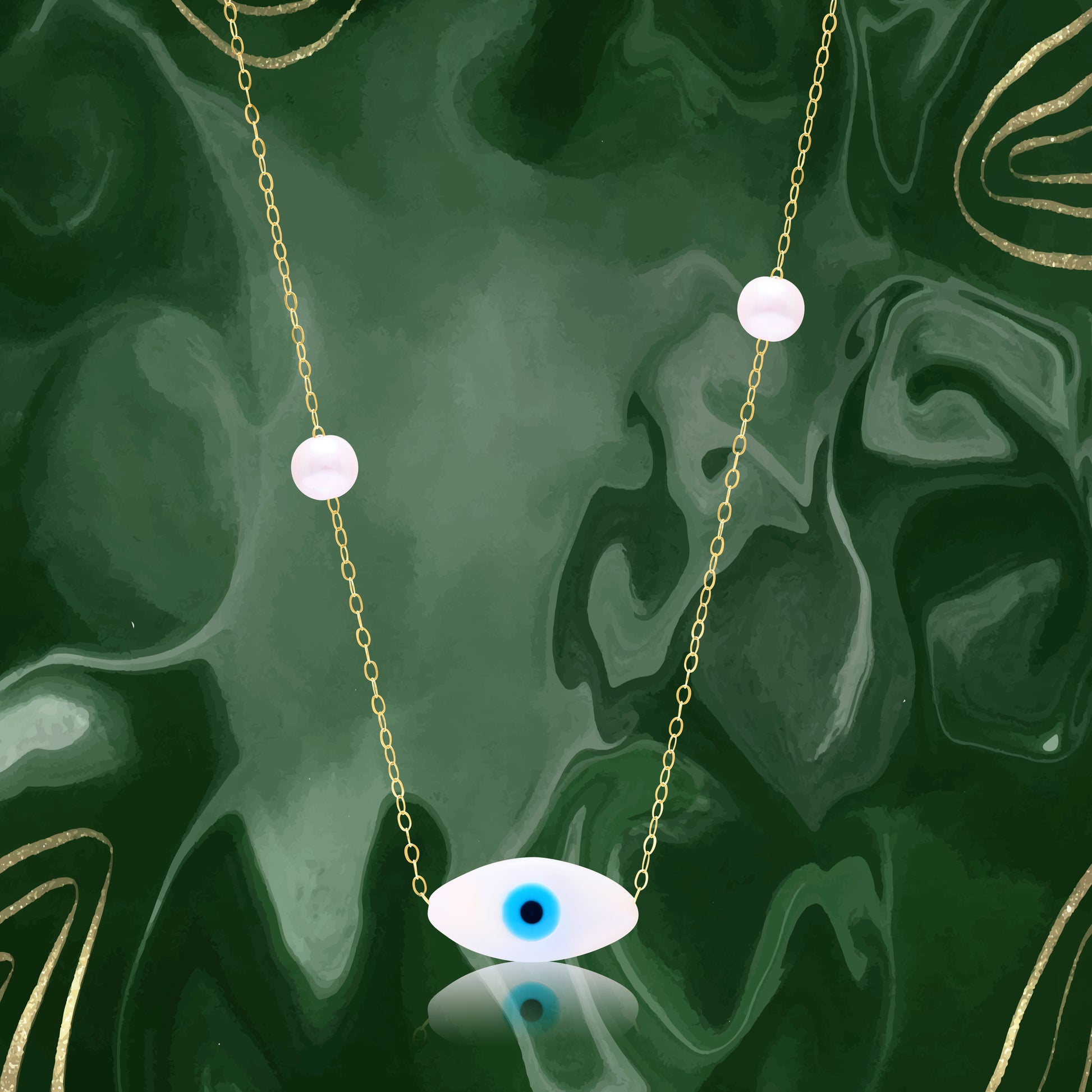 18K Pure Gold Evil Eye Seed Necklace