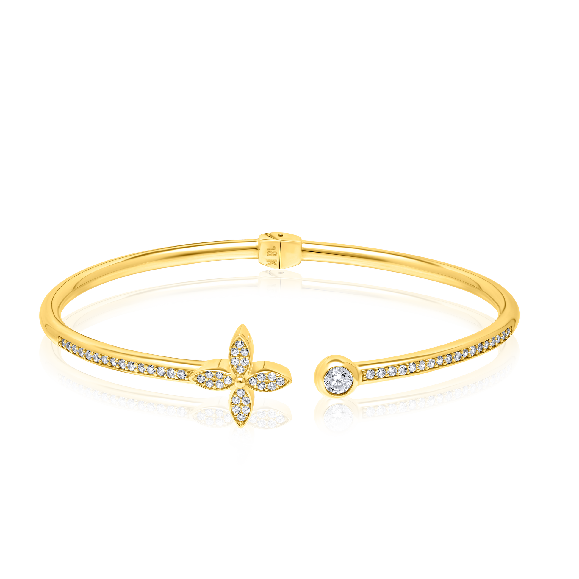 18K Pure Gold Flower Stone Bangle