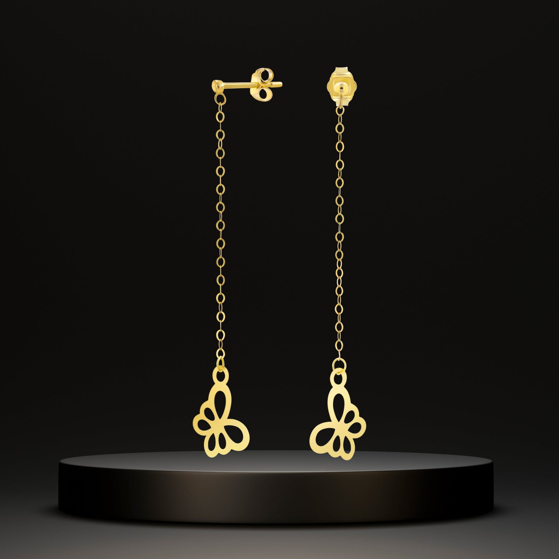 18K Pure Gold Hanging Butterfly Earring Set