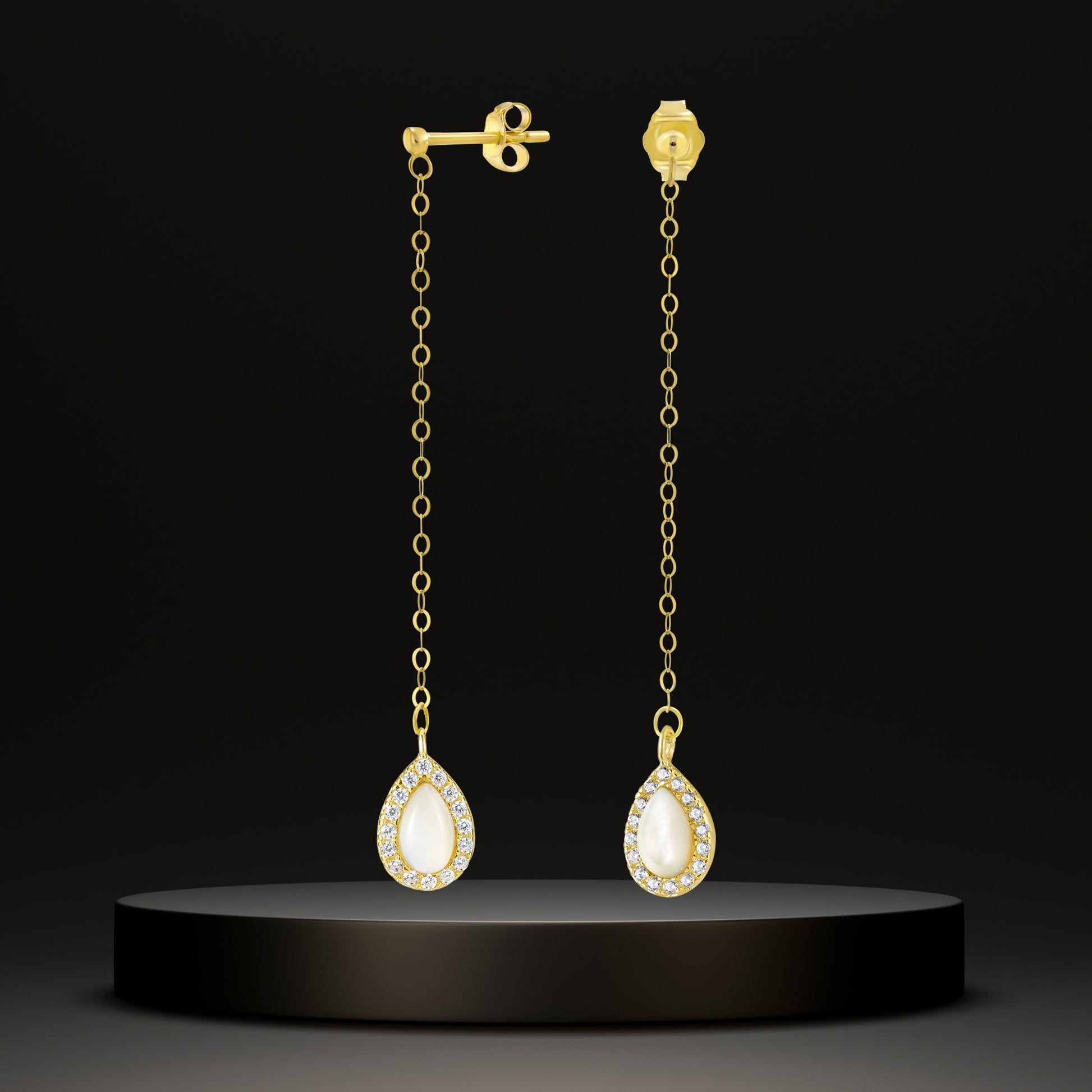 18K Pure Gold Hanging White Earring Set