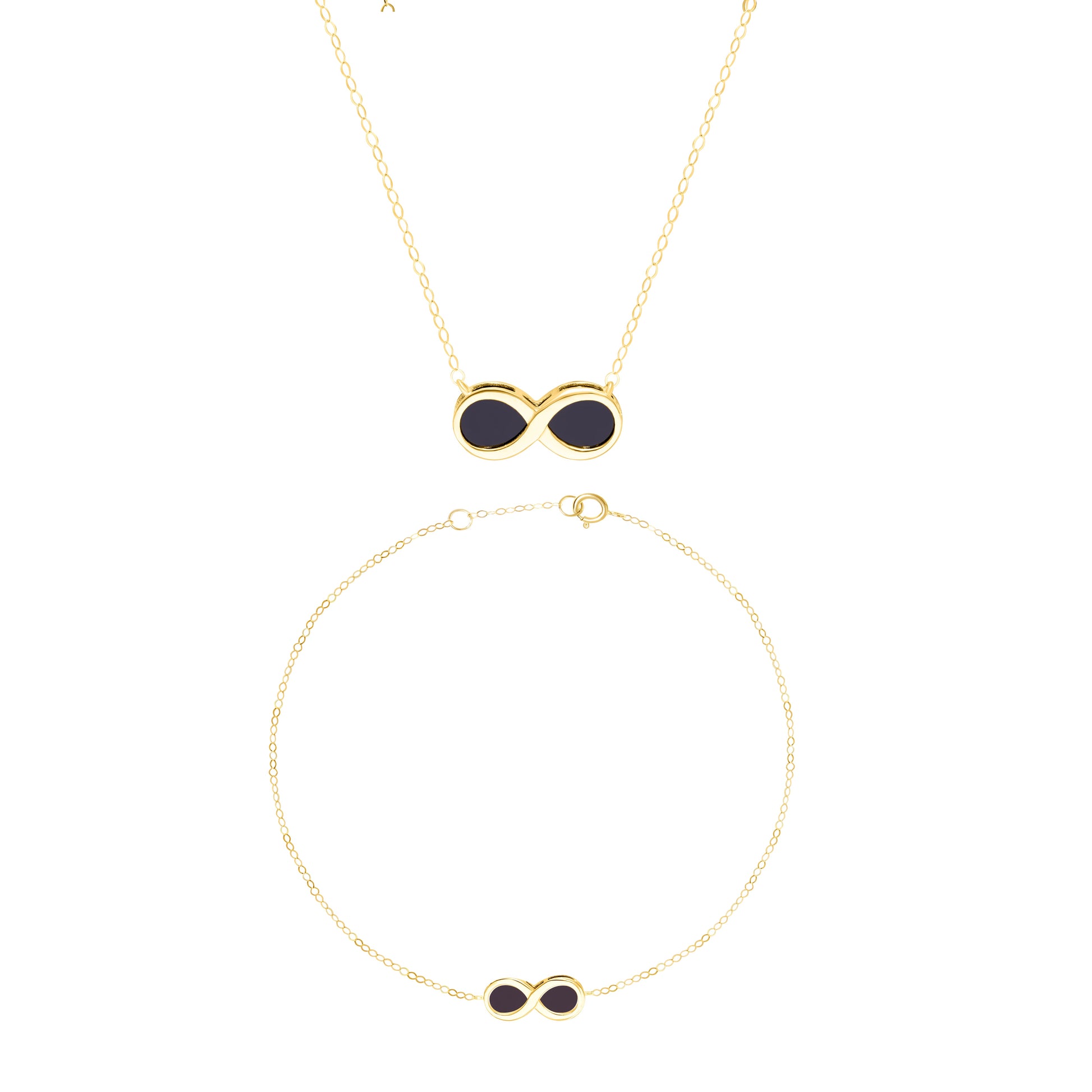 18K Pure Gold Infinity Black Jewelry Set