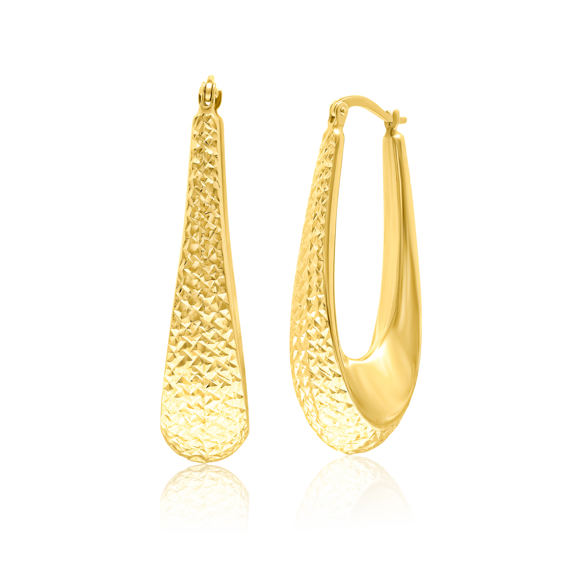 18K Pure Gold Oval Drop Earring Set