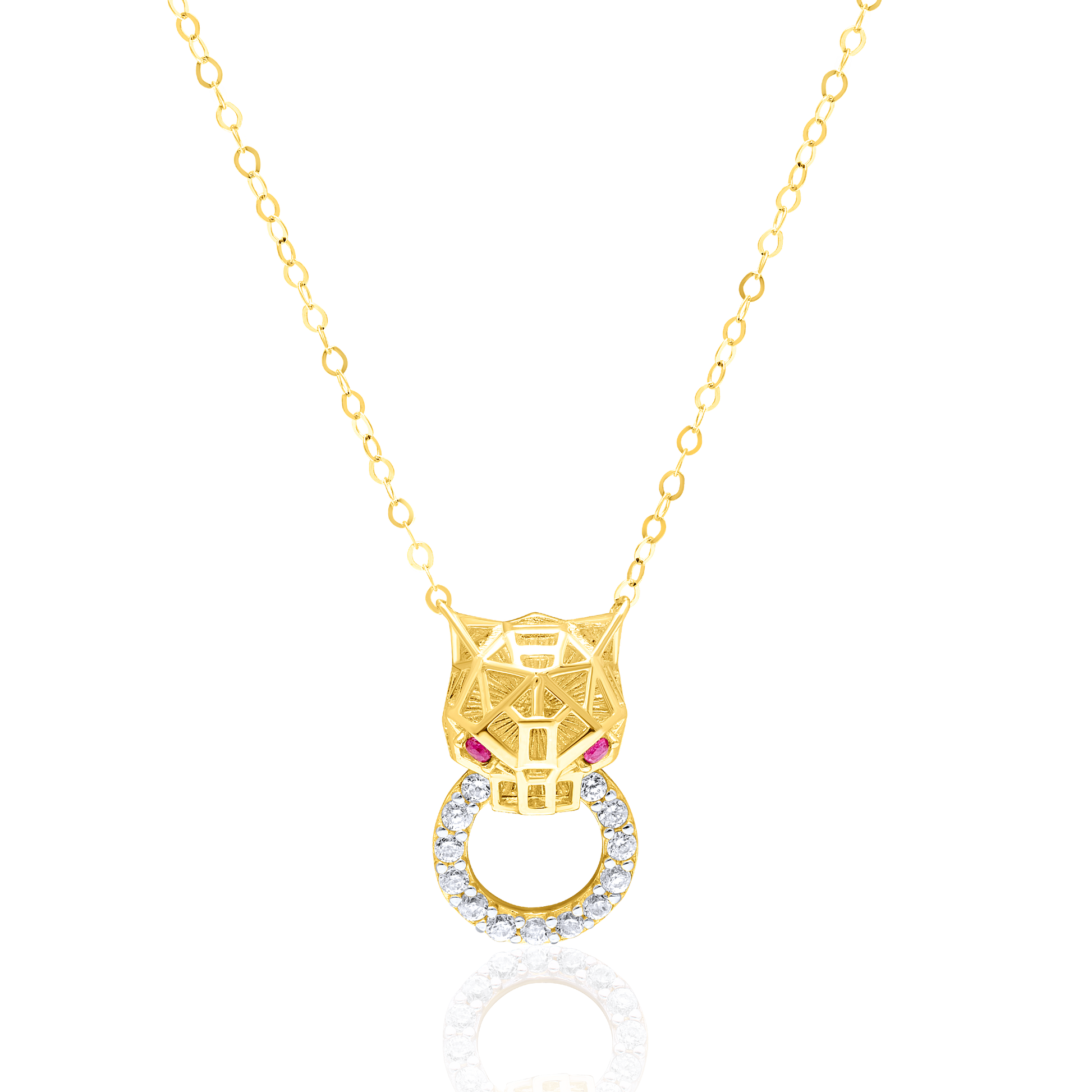 18K Pure Gold Panther Red Stone Necklace