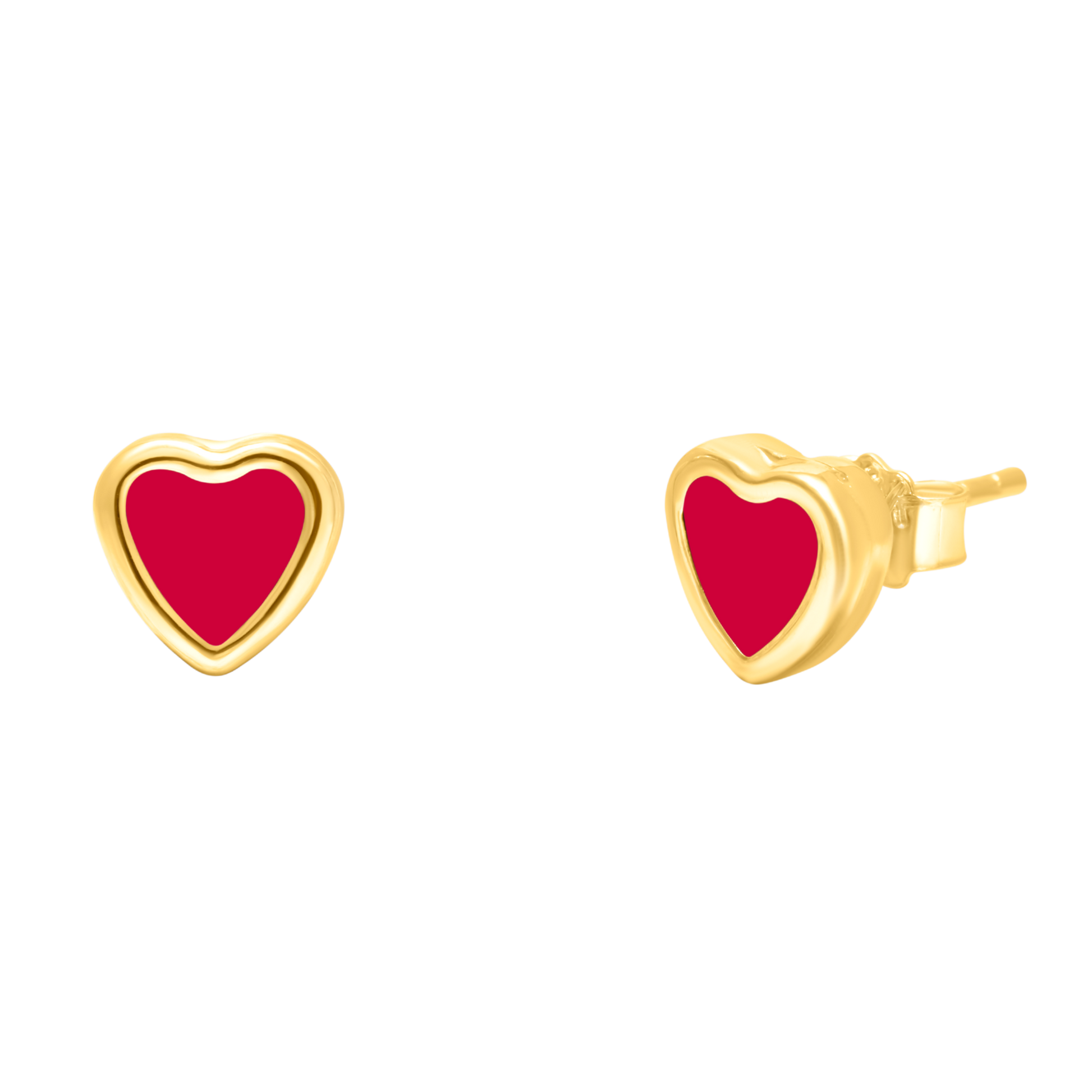 18K Pure Gold Red Heart Earring Set