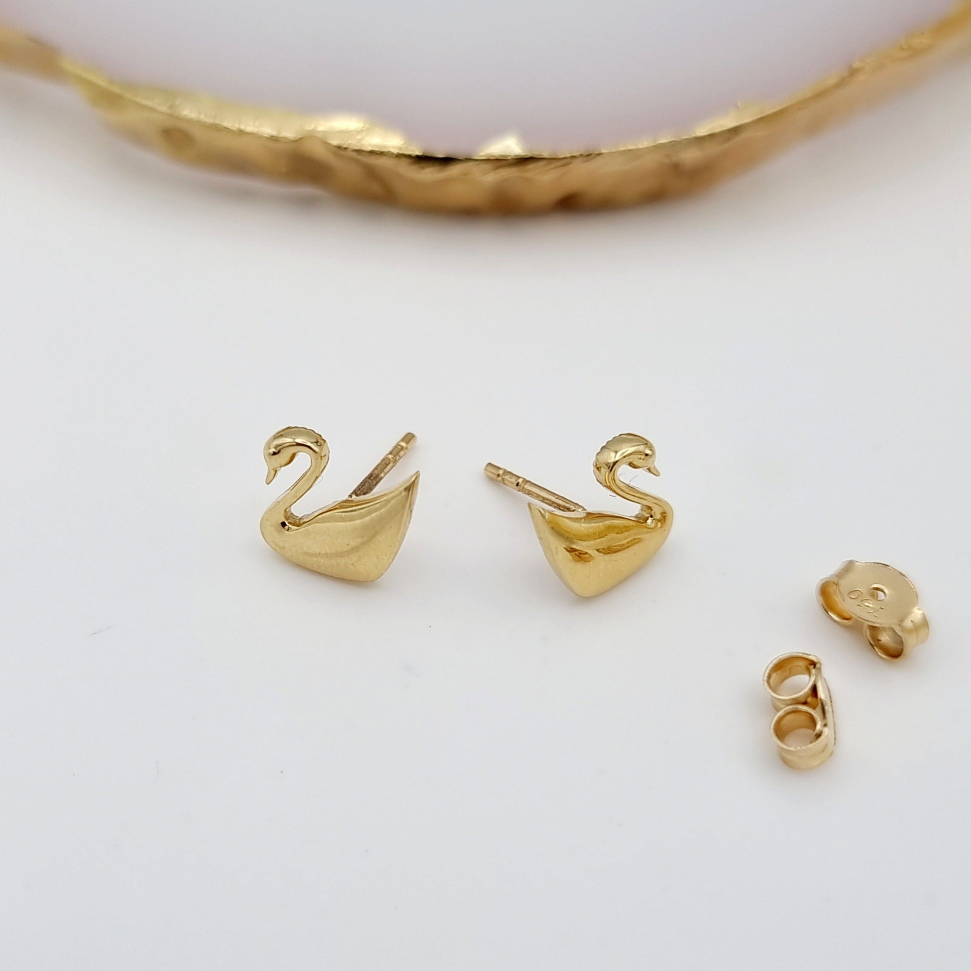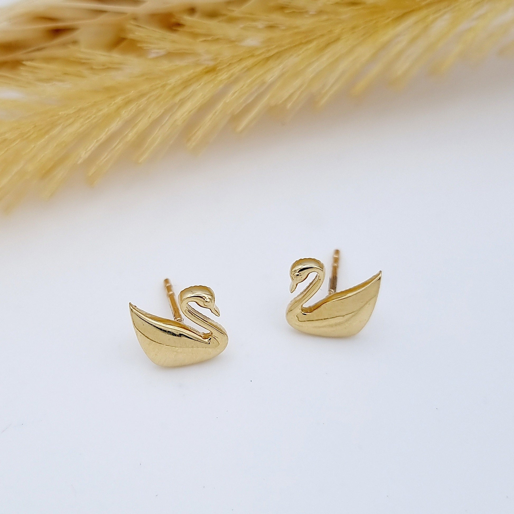18K Pure Gold Swan Earring Set