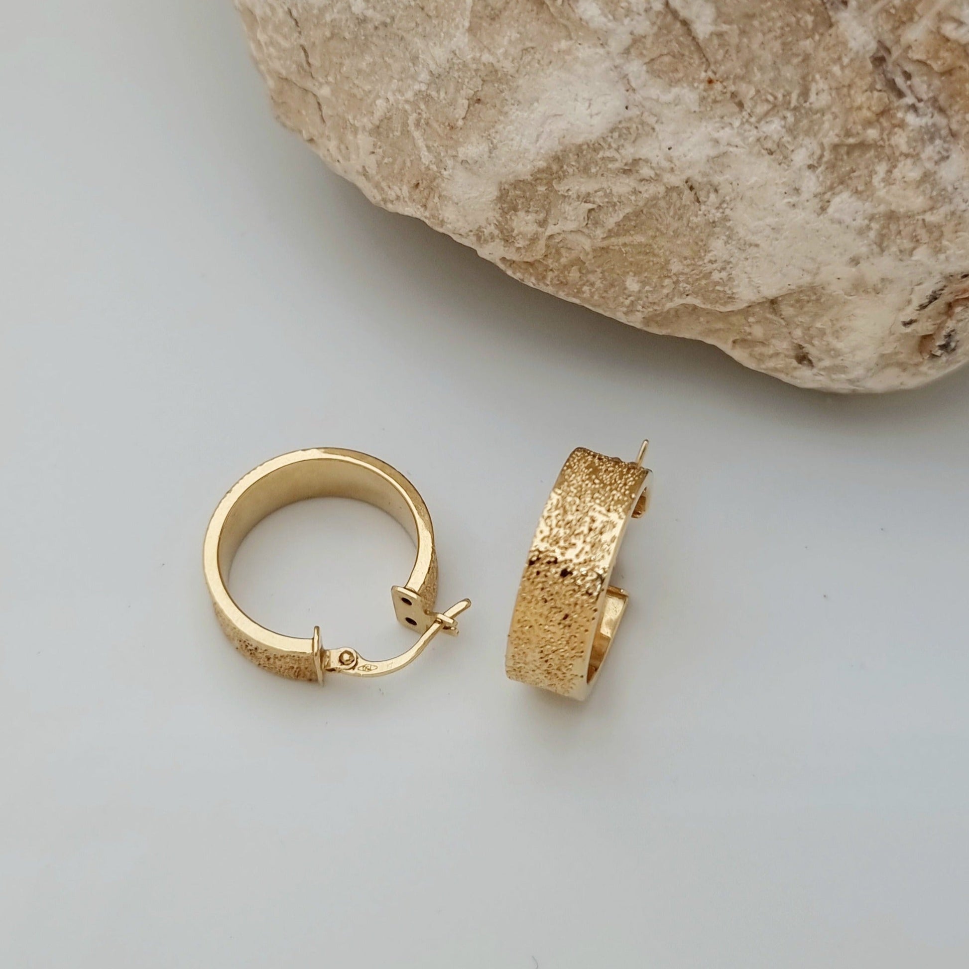18K Pure Gold Thick Round Earring Set
