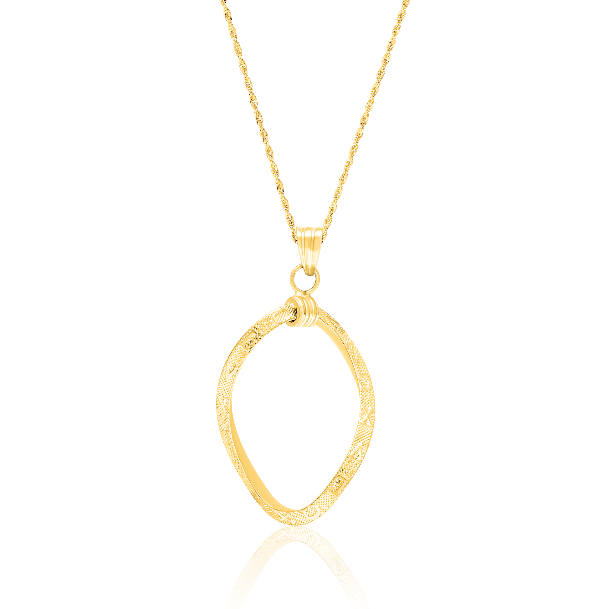 18K Pure Gold Twisted Oval Necklace