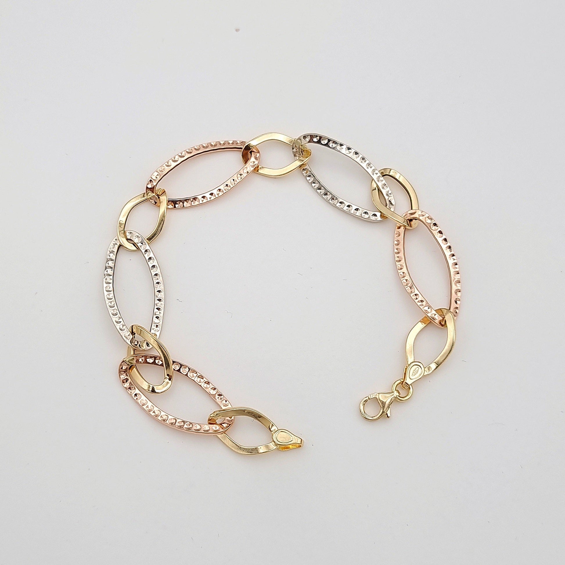 18K Pure Gold 3 Color Oval Linked Bracelet