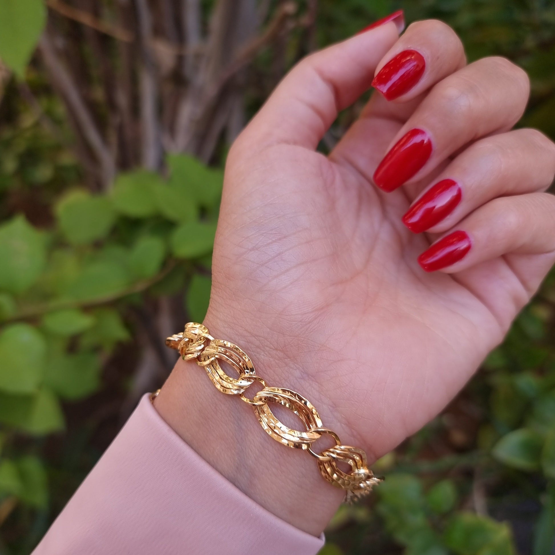 18K Pure Gold Elegant Twisted Linked Bracelet