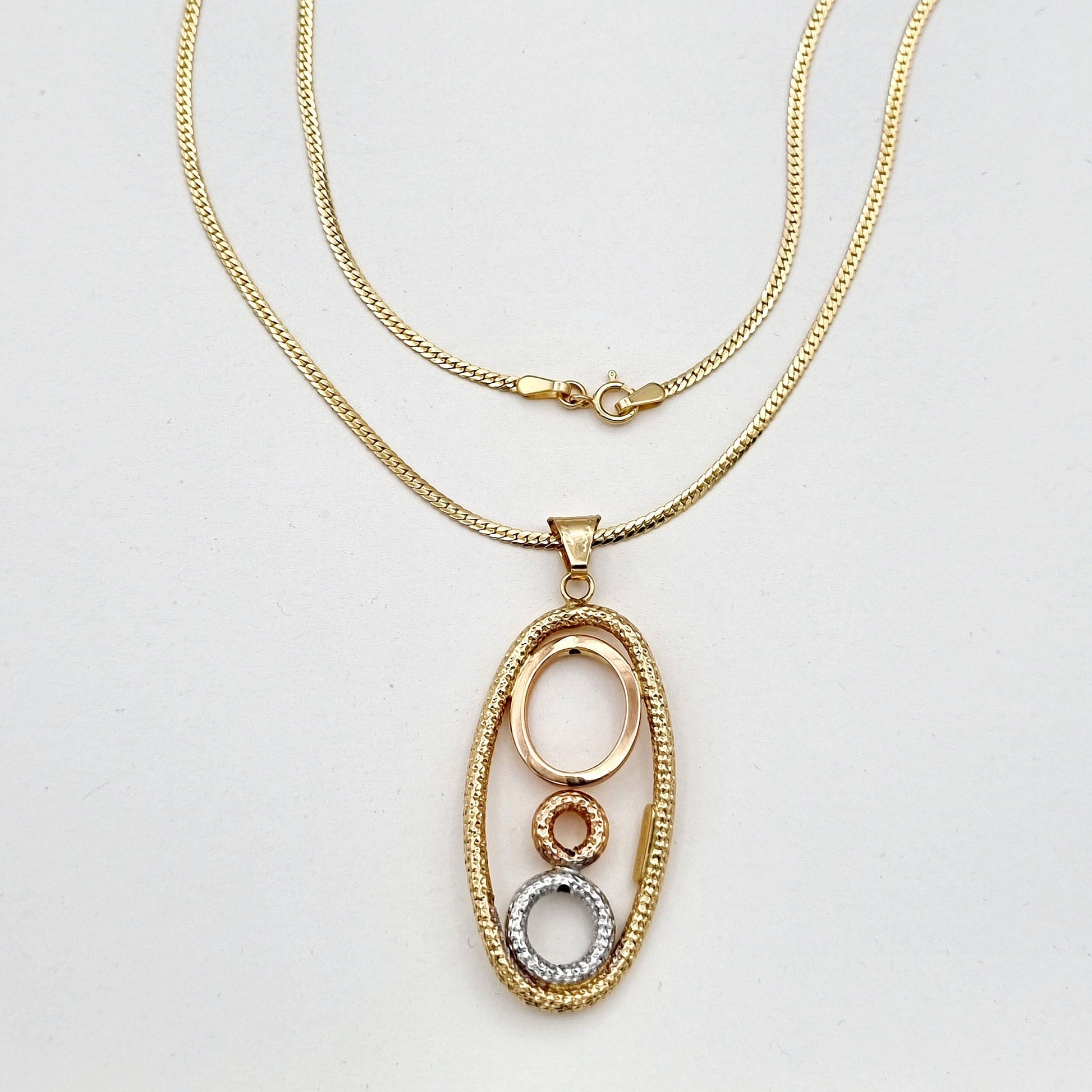 18K Pure Gold Oval 3 Color Round Necklace